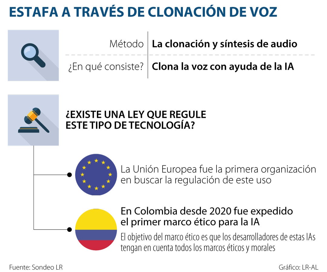 “La clonación de voz podría tener implicaciones sumamente graves debido a que se van a incrementar las estafas, por ejemplo, en casos donde los criminales llaman a sus víctimas a hacerse pasar por familiares para solicitar datos, información e incluso sumas de dinero; (situaciones que ya se presentan); pero debido a esta tecnología, al utilizar la voz clonada de cualquier persona conocida o ser querido, las estafas serían mas fáciles de hacer. Incluso para el tema de adquirir servicios que hoy en día se hacen contratos verbales por teléfono, también generaría grandes preocupaciones porque podrían estar adquiriendo servicios a nombre de una persona simplemente clonando la voz del usuario”, explicó el abogado Jimmy Jiménez.