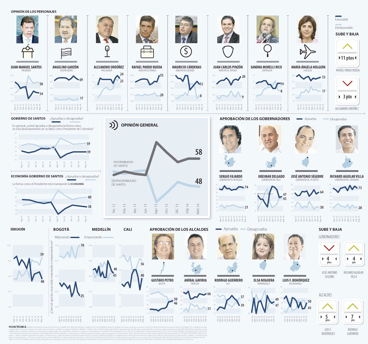 En agosto de 2013, el Presidente tenía 72 puntos de desfavorabilidad en la medición de Gallup, hoy, se encuentra en 58. Hay que mencionar que Santos anunció en noviembre su candidatura a un nuevo periodo, y desde ese momento ha cedido tres puntos de favorabilidad.