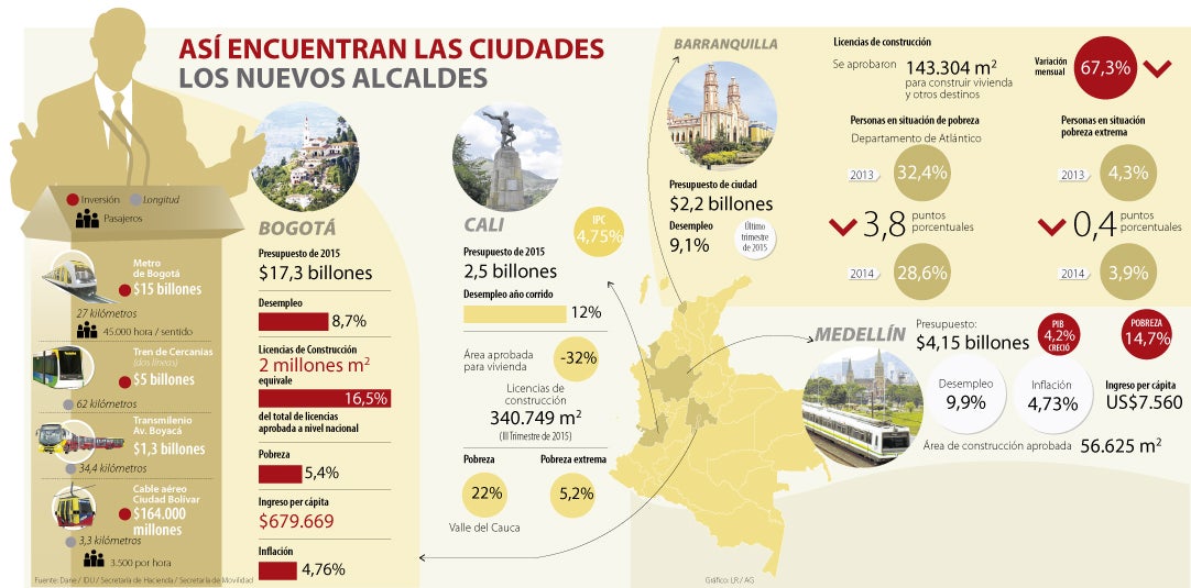 Con la finalización de las campañas viene la realidad de las cuentas fiscales que hacen aterrizar las promesas de los candidatos, ahora alcaldes y gobernadores. Si se junta el presupuesto de las cuatro ciudades, la cifra que alcanza es de $25,8 billones.