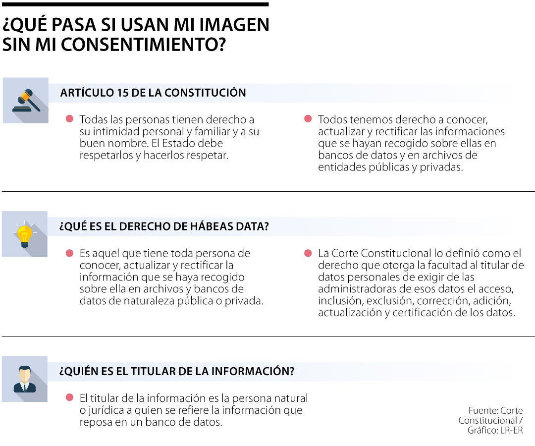 Y, aunque la Constitución es garante de este derecho, hay una Ley llamada Habeas Data que protege la información existente sobre una persona, incluyendo la imagen de la misma.