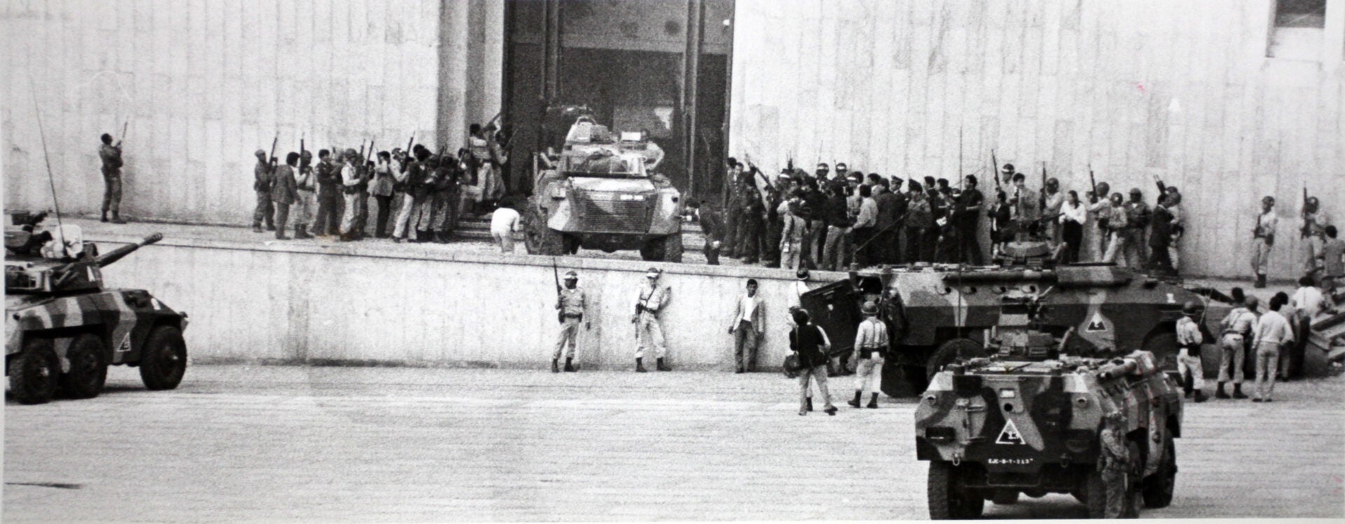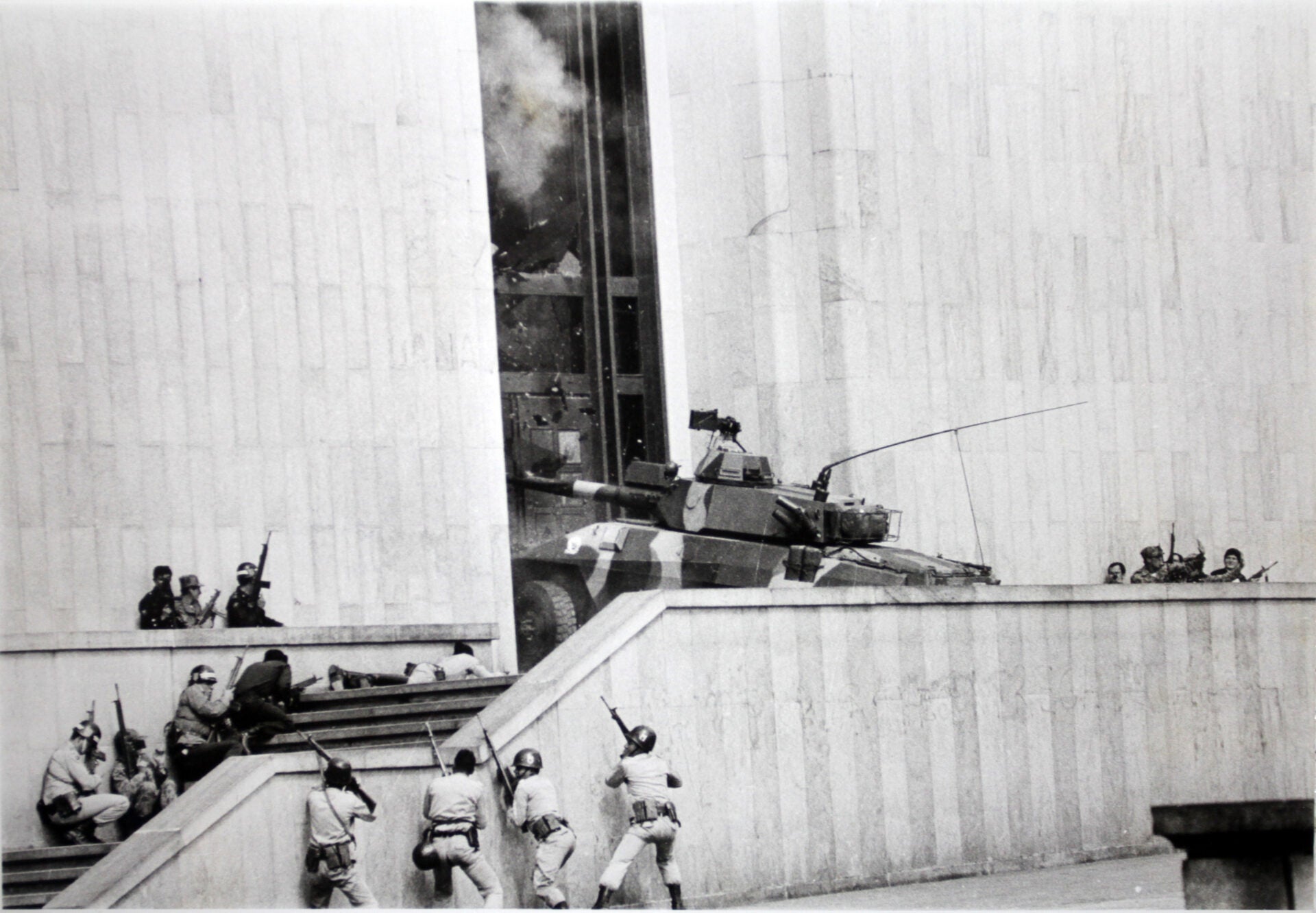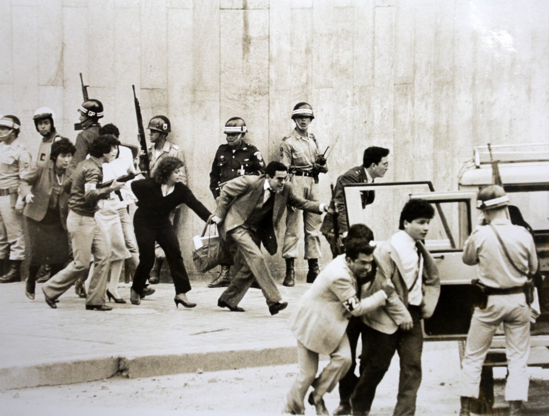 Pese al llamado de ambos, desde lados diferentes del atentado, los militares recibían órdenes de continuar con los disparos. La policía y el ejército disparaban sin contemplación a los guerrilleros y, en medio de ese fuego cruzado, algunas personas pudieron salir del palacio.