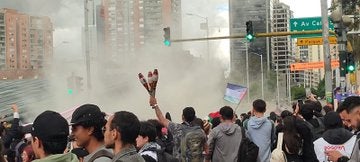 - Los manifestantes en pro de Palestina avanzan por la Carrera 7 lanzando gases y pólvora, causando pánico en los comerciantes. Dentro de poco, se unirán a la caravana de la Universidad Pedagógica