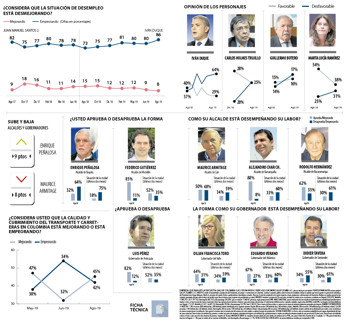 El reporte de agosto de la encuesta demuestra que 64% de los colombianos desaprueba el desempeño del presidente de la República, un aumento de dos puntos porcentuales con respecto al resultado de junio del mismo año.