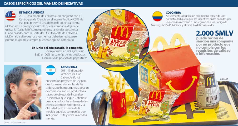 Para no ir muy lejos, en Argentina, el diputado kirchnerista Juan Cabandié propuso en mayo del año pasado un proyecto de ley que buscaba prohibir la venta de menús que estuviesen acompañados de objetos de incentivo para consumo, de los cuales solo exceptuaba la restricción en aquellos que contuvieran frutas y verduras, o que no superaran el nivel calórico recomendado por los expertos en nutrición.