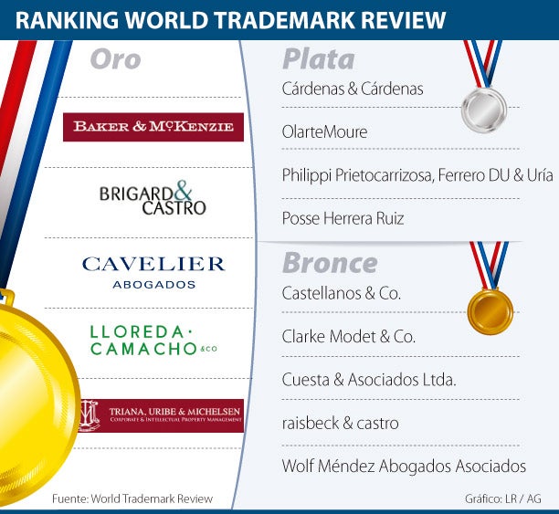 Cárdenas & Cárdenas, OlarteMoure, Philippi, Prietocarrizosa, Ferrero DU & Uría y Posse Herrera Ruiz son las compañías de segundo nivel (plata); y Castellanos & Co, Clarke Modet & Co, Cuesta & Asociados Ltda, raisbeck & castro y Wolf Méndez Abogados Asociados, son las firmas de tercer nivel (bronce), respectivamente para la guía mundial.