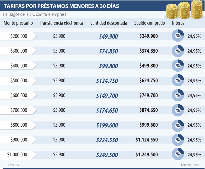 Con la figura de ‘Contrato de Anticipos de Flujos Futuros’, BCI Empresas S.A.S (propietaria de los establecimientos Anticipos Express) realizaba préstamos a los colombianos, cobraba sus salarios y recaudaba por ello intereses usureros, razón por la cual la Superintendencia de Industria y Comercio (SIC) decidió imponer la máxima sanción de $1.288 millones.