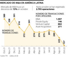 Con corte a octubre se han registrado en Colombia 211 operaciones, lo que representa un aumento de 5,5% frente al año anterior