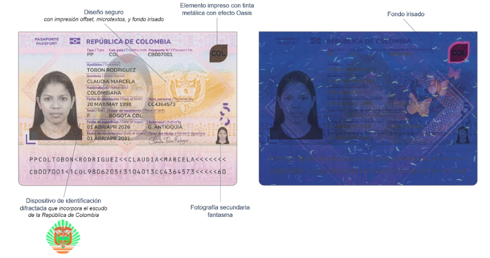 Este es el diseño del primer pasaporte que imprimió la Imprenta Nacional bajo del nuevo modelo del documento de identidad que se inicia a expedir desde hoy, 1 de abril con sus características correspondientes:
