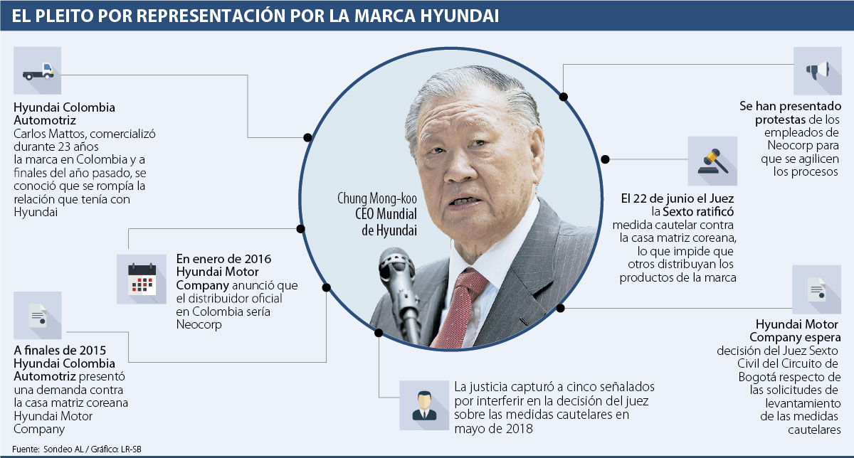 Todo comenzó con una disputa entre las partes porque la empresa coreana decidió cambiar de distribuidor en el país y clausurar su contrato con el empresario colombiano. Mattos, que no estuvo conforme después de haber tenido 23 años de relación comercial con la multinacional, la demandó ante los estrados judiciales. El proceso tuvo tantos alcances que en 2015 causó la suspensión temporal de la venta de esta marca en el país.