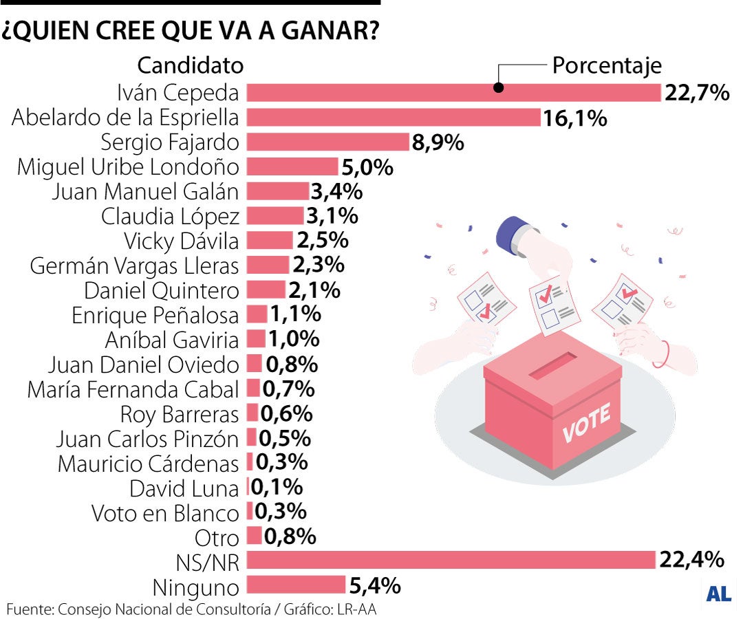 De igual manera, los encuestados también concluyeron que Iván Cepeda ganaría las elecciones del próximo año si estas se realizaran mañana con 22,7%.