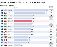 Colombia ocupó el noveno puesto en ranking de combate a la corrupción en la región