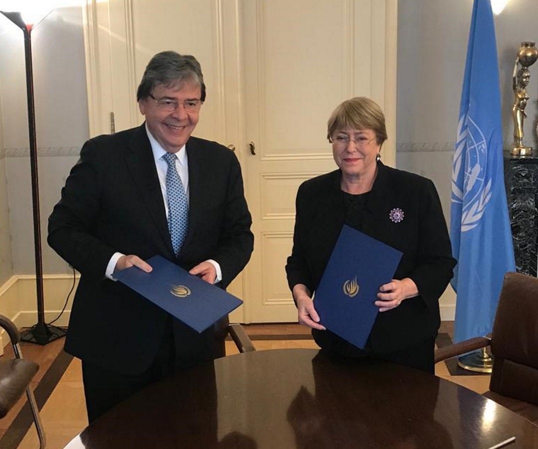 La Alta Comisionada de Naciones Unidas para los Derechos Humanos, Michelle Bachelet, y el canciller Carlos Holmes Trujillo, firmaron un acuerdo para dar continuidad por tres años más a Oficina de la Alta Comisionada.