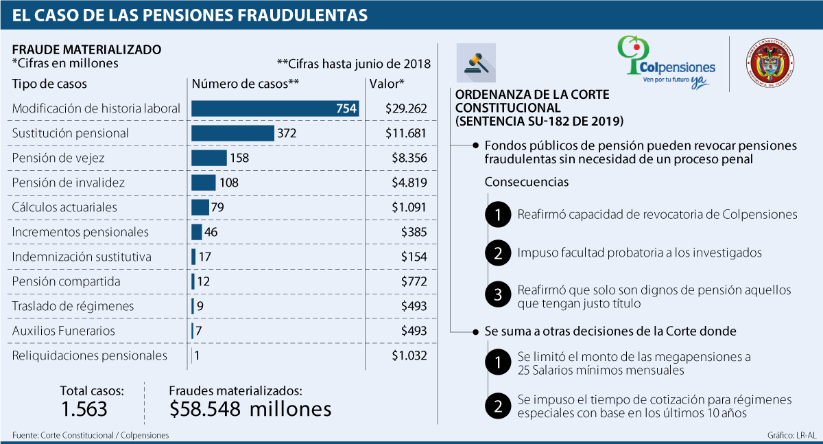 Mediante la Sentencia SU-182 de 2019, la Corte Constitucional avaló la figura de revocatoria de pensiones fraudulentas por parte de Colpensiones. Según se estableció en la providencia del alto tribunal “no es necesario aportar una sentencia penal para desvirtuar la buena fe del beneficiario de la pensión”.