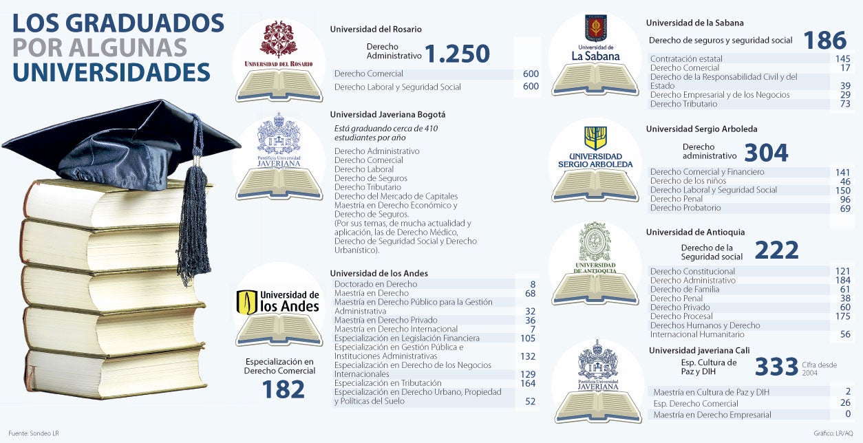 Entre 2001 y 2011 en Colombia se graduaron del pregrado de derecho 89.915 profesionales, según el Ministerio de Educación.