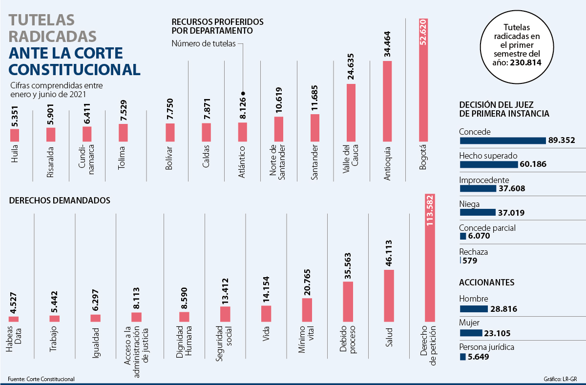 La acción de tutela ha cobrado relevancia en los más de 30 años desde la reforma a la Constitución Política en 1991. Durante 2021, exactamente el 4 de julio, se celebró su trigésimo aniversario y, por ello, es relevante hacer un recuento del número de tutelas que ha recibido la Corte Constitucional en los últimos seis meses.