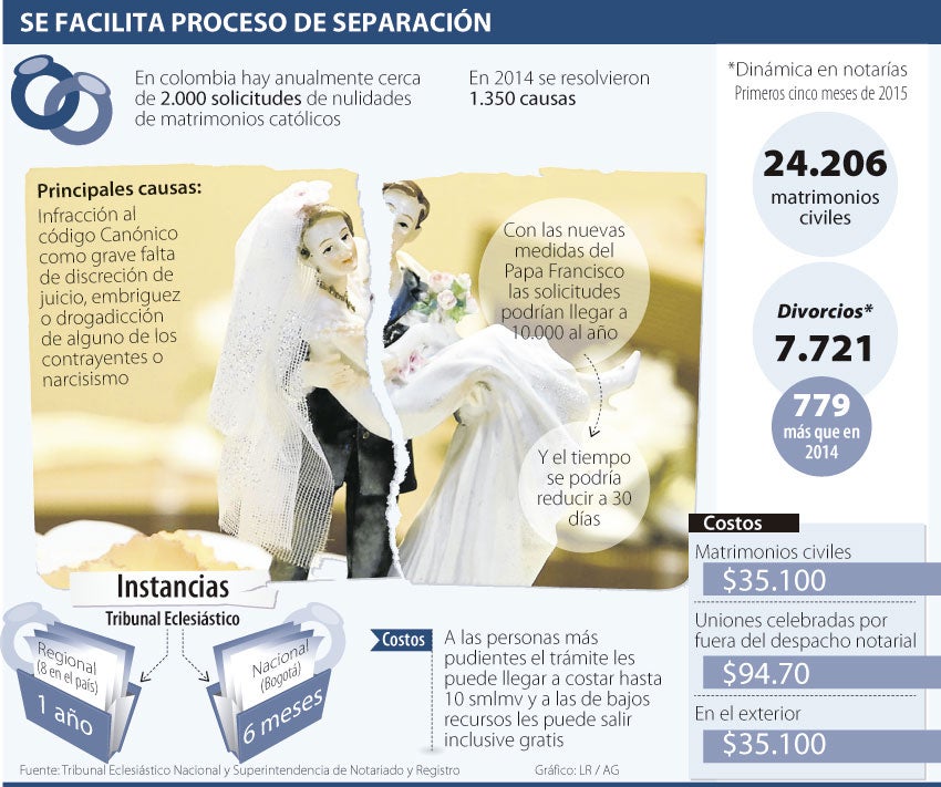 En cuanto a costos, para una persona pudiente, hoy el trámite le puede pasar una factura hasta de 10 smlmv, es decir $6.443.000 y a una persona de bajos recursos inclusive le puede salir gratis. Pero los cambios del máximo pontífice incluyen la gratuidad.