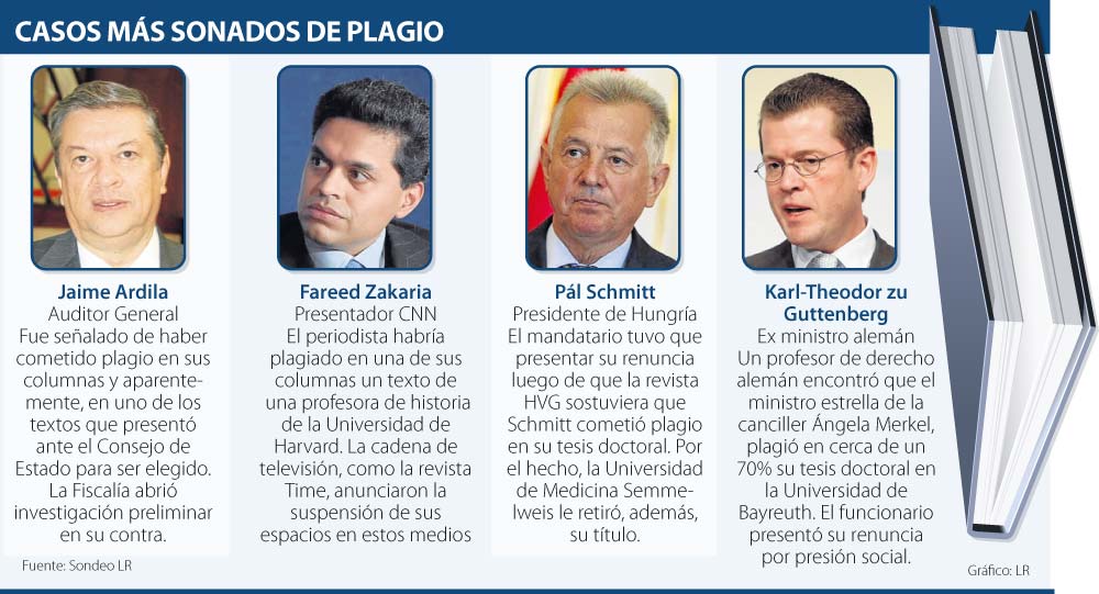 El hecho parece ser un mal de muchos. Desde los estudiantes de la Universidad Autónoma que plagiaron su tesis de grado días atrás, pasando por las columnas y libros del auditor general Jaime Ardila, hasta las contenidos plagiados por el presentador de CNN Fared Zakaria, son algunos casos que ponen en evidencia que sobre el tema no hay distinciones de ningún tipo.