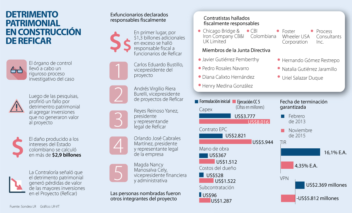 La investigación contra la empresa Reficar empezó en 2016 cuando la Contraloría sospechó que hubo sobrecostos en la implementación de la infraestructura de la refinería. Juan David Beltrán, abogado especialista en Derecho Administrativo, afirmó que el ente de control había encontrado sobrecostos por más de $5 billones en ese entonces.