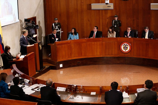 No obstante, la Corte salvó con una votación de 5 a 4 la refrendación que hizo el Congreso del nuevo acuerdo de paz alcanzado con las FARC, el que fue firmado en el Teatro Colón, a pesar de una amplia discusión al respecto en la Sala Plena.