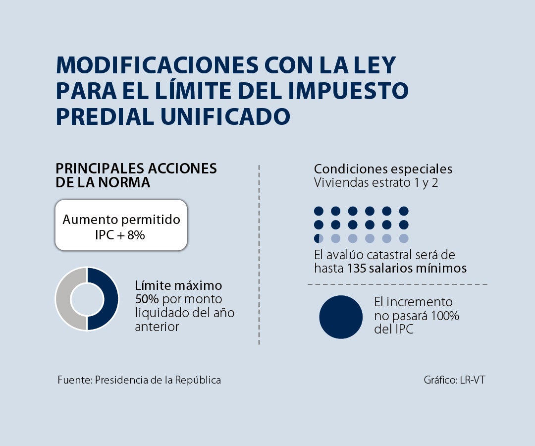 La nueva norma indica que el impuesto predial será de máximo el Índice de Precios al Consumidor (IPC) más 8%, en caso de que en el predio se haya realizado actualización catastral.