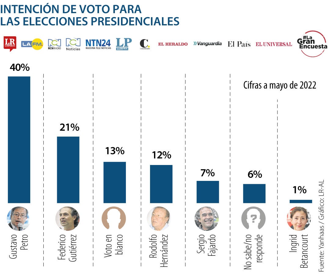 Yanhaas presentó una nueva edición de La Gran Encuesta 2022, que ofrece luces sobre el panorama de la primera vuelta de las elecciones presidenciales a menos de 20 días de que los colombianos vayan a las urnas.