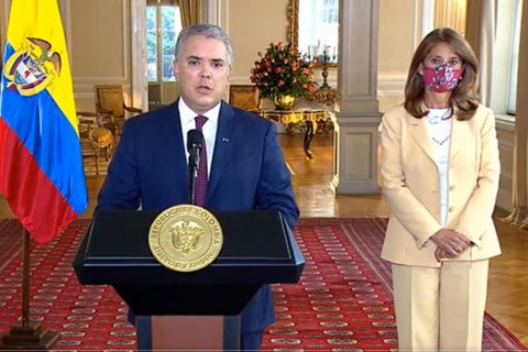 "Nos duelen las miles de familias colombianas que han sido víctimas del vandalismo", dijo mediante una breve alocución donde condenó los ataques a la infraestructura, los bloqueos que impiden el abastecimiento en diferentes rincones del país y los ataques contra los CAI de la Policía Nacional.