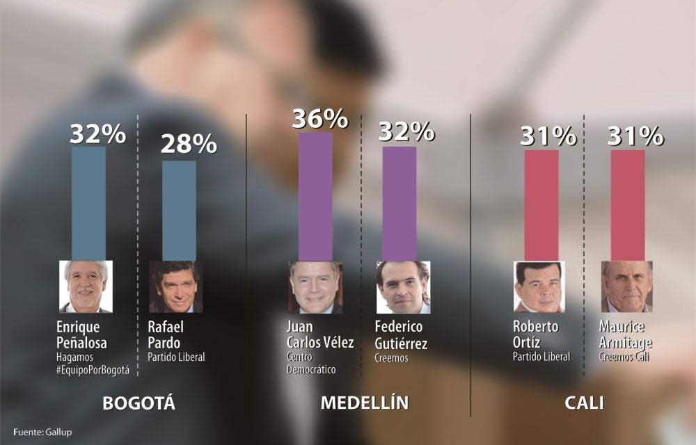 Así lo confirmó la última encuesta Gallup, realizada entre el 16 y el 21 de octubre de 2015 y contratada por El Colombiano, El País, Vanguardia Liberal, El Espectador, Caracol Televisión, Blu Radio y la Universidad Nacional en la que también se muestra que en Bogotá, Cali y Medellín hay empate técnico.
