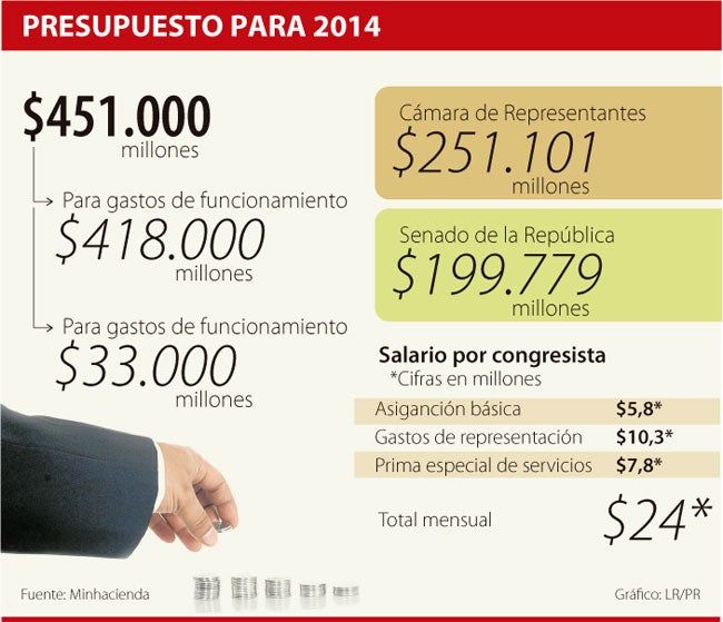 El Congreso de la República tiene un presupuesto para este año de $451.000 millones, cifra superior a lo que se destina para los sectores de ciencia y tecnología o cultura ($342.000 millones), que solo representa 0,3% del Presupuesto General de Nación (PNG). Del total del gasto destinado al Congreso, el 19,2% (cerca de $87.000 millones) es exclusivamente para los salarios de los senadores y representantes.