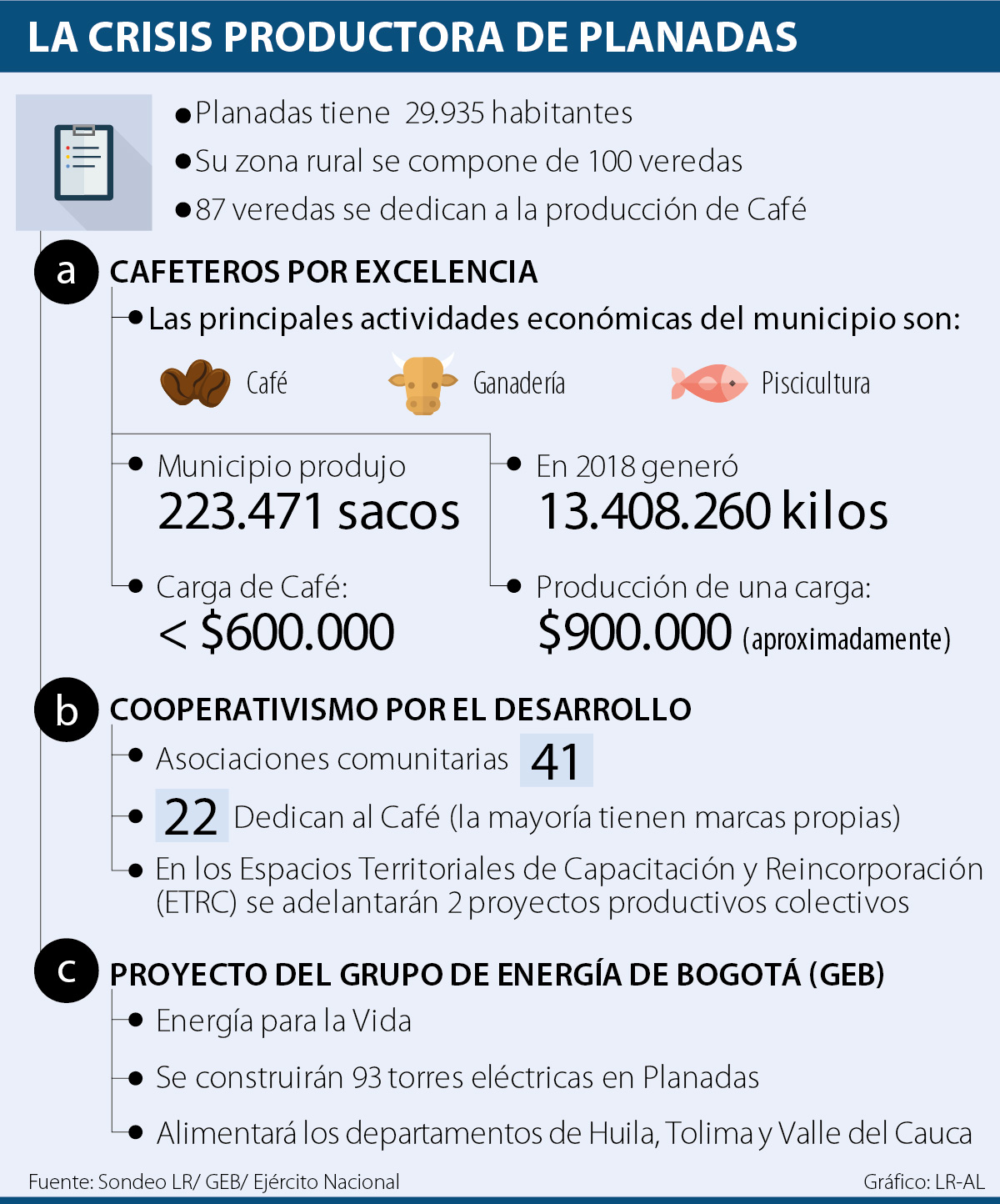 Para contrarrestar esta situación de inestabilidad económica, la población se ha enfocado al cooperativismo. En Planadas hay 41 asociaciones populares enfocadas en emprender en distintos campos, de este número 22 se dedican a impulsar la venta de café con compradores extranjeros que ingresan a negociar sin ninguna clase de intermediario, de esta forma pueden vender el café con precios un poco más altos.