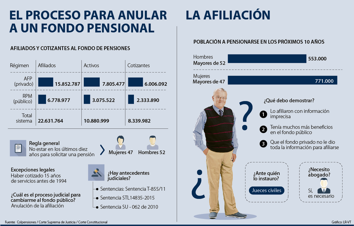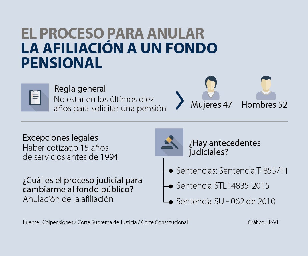 Para eso, se debe cumplir con tres requisitos: haber cotizado más de 15 años antes de 1994, pertenecer a un régimen de transición y haber realizado el traslado con información insuficiente. Si el afiliado hace la reclamación ante los fondos y no realizan el cambio, puede radicar la acción de tutela ante cualquier juzgado competente.