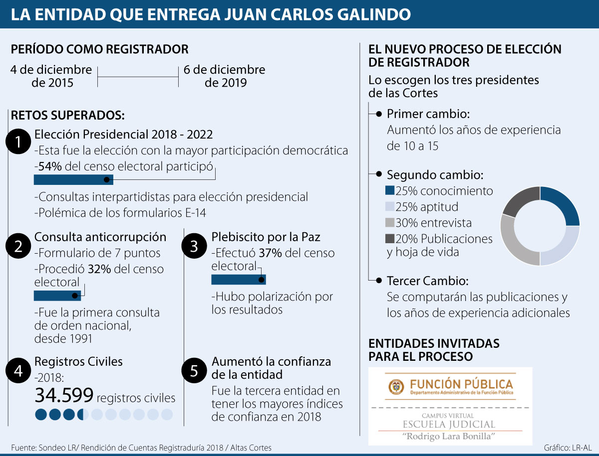 El proceso se extenderá en las distintas etapas hasta el 6 de diciembre, fecha en la que deberá asumir el reemplazo del actual registrador, Juan Carlos Galindo. En la recta final de su mandato, deberá afrontar una elecciones polarizadas elecciones regionales.