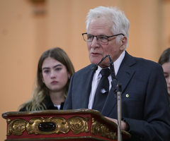 Instó a continuar su legado político: "Miguel dejó sembrada la política decente sin negociar principios". Pidió a sus colegas honrarlo mediante una política "con propósito de servir", que acoja "distintas ideologías bajo el manto sagrado de la democracia, no de las armas".