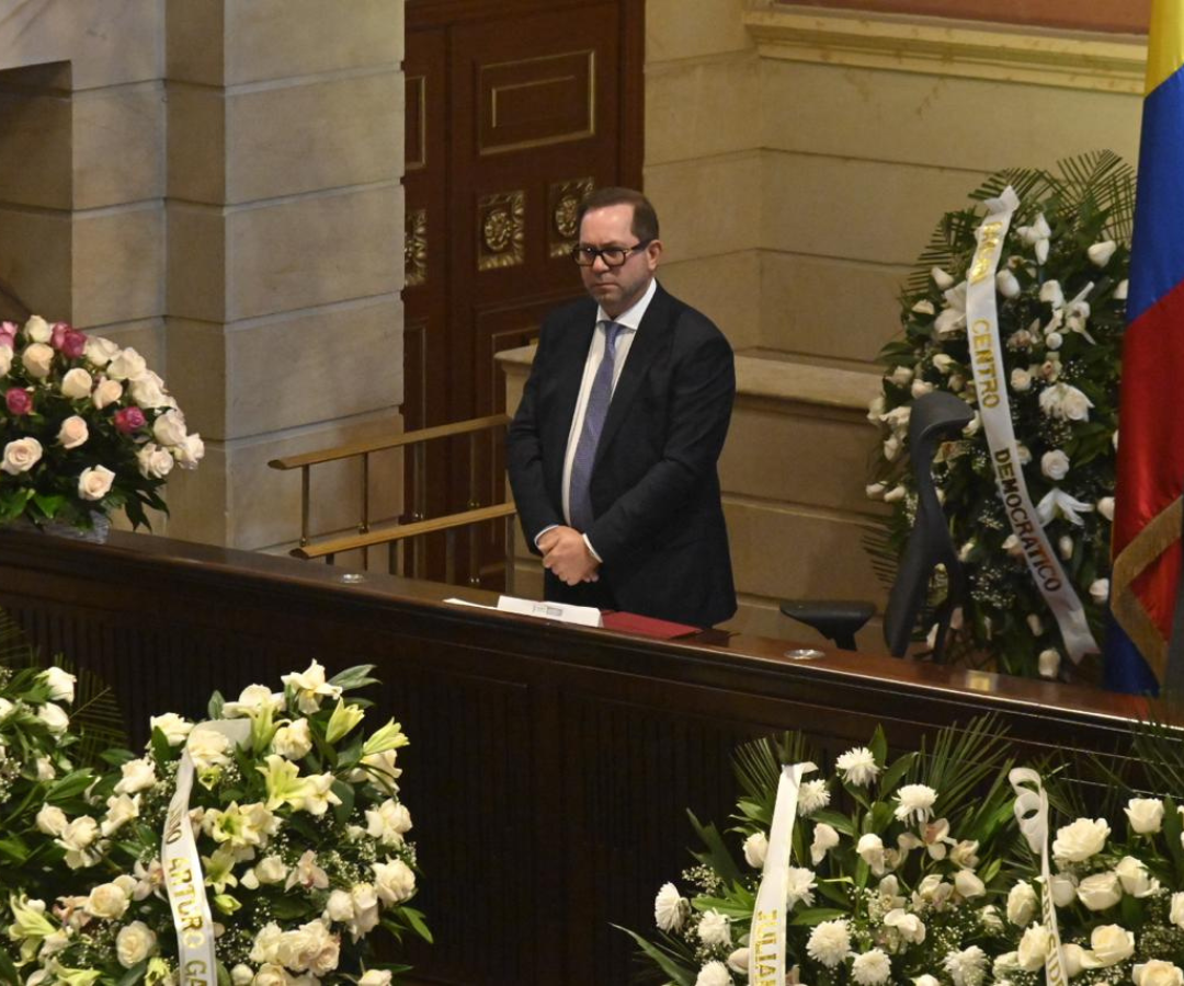 El acto inició con un minuto de silencio junto a las palabras iniciales del presidente del Congreso de la República, Lidio García. Manifestó que el fallecimiento de Uribe Turbay deja "rabia por una nación que, una vez más, ve apagarse una de sus luces más luminosas. Porque, como nos recuerda la historia, un líder verdadero, un faro que guía en la oscuridad, nace quizás cada medio siglo".