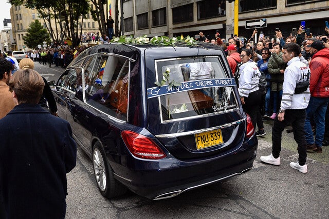 Miguel Uribe Turbay, el senador que aspiraba a la presidencia de Colombia, falleció dos meses luego de que un menor de edad le propinara tres disparos durante un evento político en el parque El Golfito en el barrio Modelia de Bogotá. Hoy familiares, amigos y colegas le dieron un último adiós en el Congreso de la República y la Catedral Primada, donde se despidió su féretro con la canción "El Guerrero" rumbo al Cementerio Central.