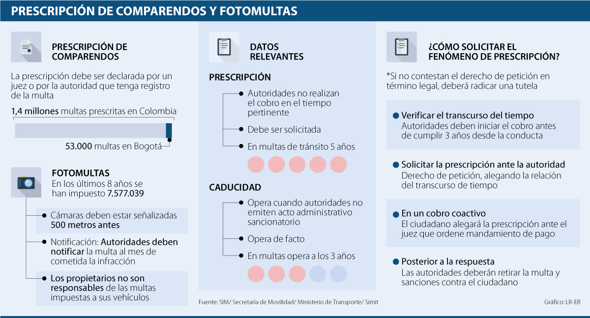Según las bases de datos reportadas por el Sistema Integrado de información sobre multas y sanciones por infracciones de tránsito (Simit) en el país hay 1.600.000 multas prescritas. Sin embargo, en muchas oportunidades las autoridades encargadas terminan cobrando sanciones que ya no cuentan con la fuerza jurídica vinculante para ser obligatorias.