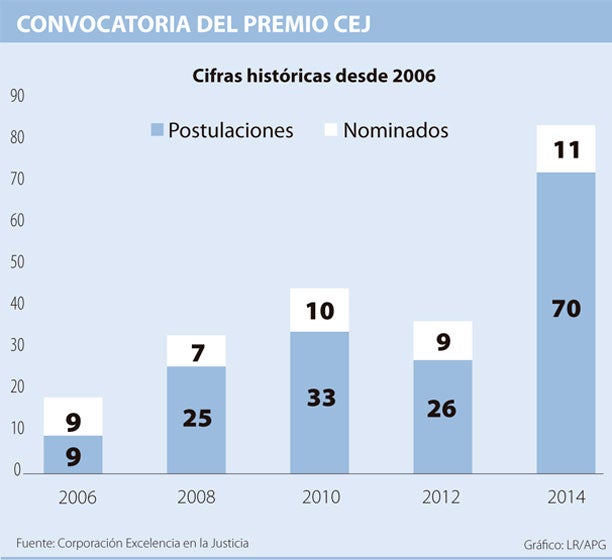 El pasado 25 de noviembre se realizó la entrega del V Premio Excelencia en la Justicia, y lo primero que logró demostrar fue el impacto y consolidación de su imagen en el sector y en el país. En la primera versión del premio (2006), se inscribieron tan solo 9 prácticas gracias a una campaña “persuasiva” para que algunas de ellas participaran. Hace dos años se presentaron 26 proyectos y en esta última versión los organizadores se sorprendieron con la postulación de 70, que sumadas a las prácticas anteriores llegan a 165 en los 8 años de vida del premio.