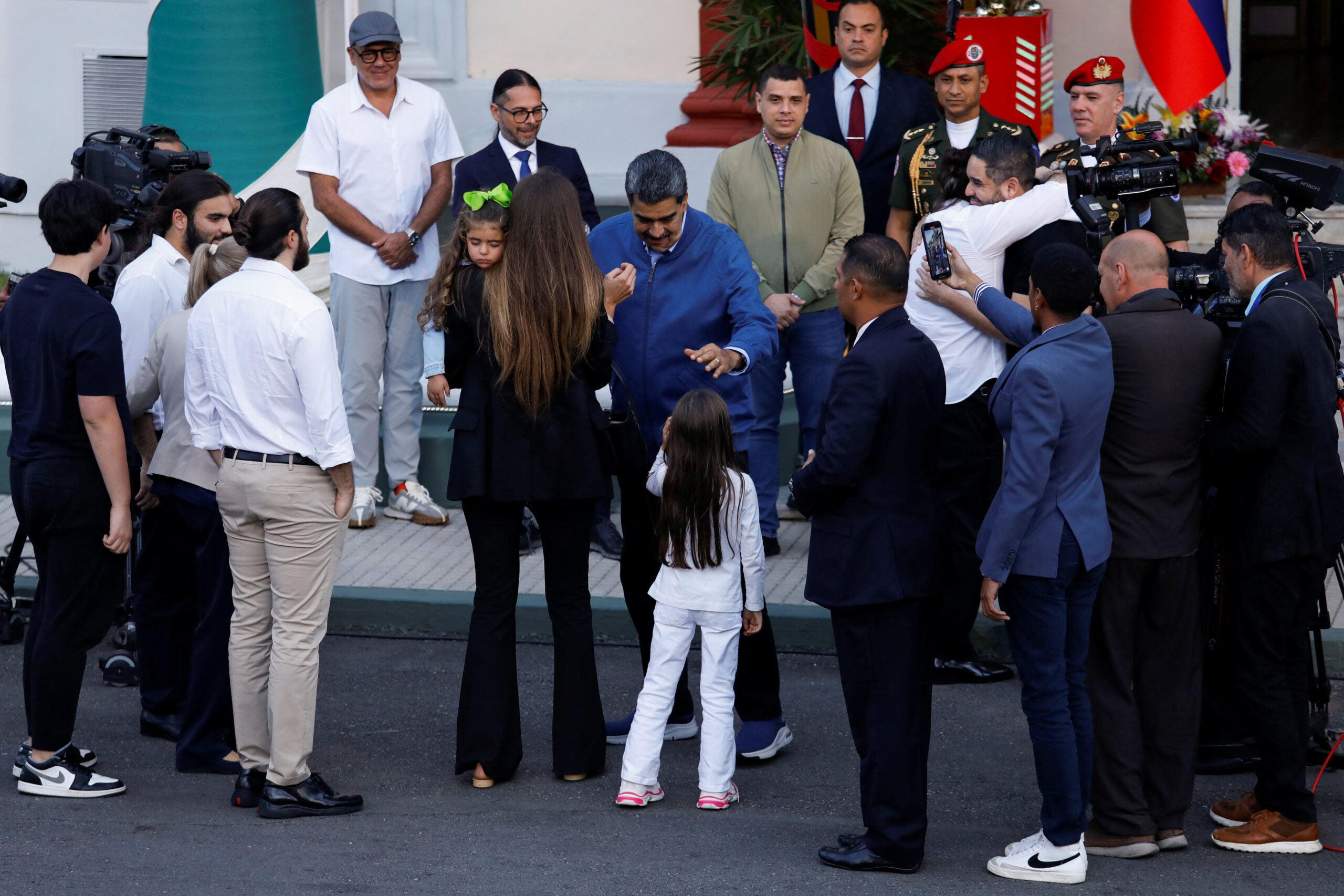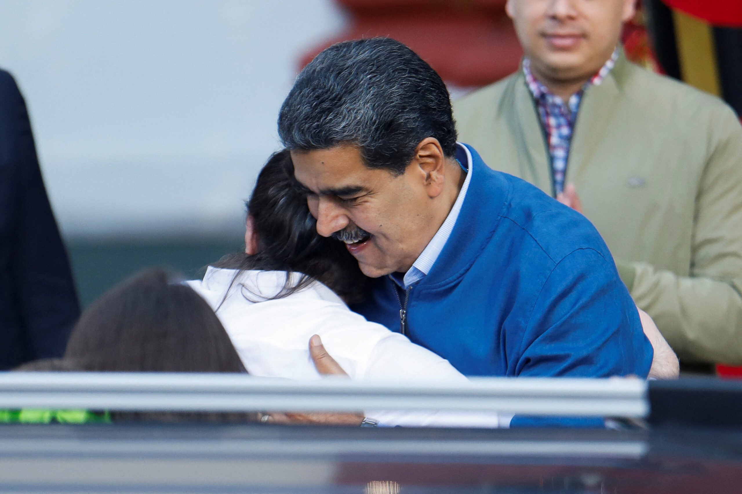 Desde Caracas celebraron la libertad de SaabMaduro y Saab se fundieron en un fuerte abrazo tras la llegada del barranquillero a MirafloresSaab llegó a Venezuela acompañado de su familiaMaduro se pronunció desde las afueras de Miraflores y mostró su satisfacción por la liberación de SaabEl barranquillero llegó en un carro blindado y en una camioneta negra junto a su familia al Palacio de Miraflores