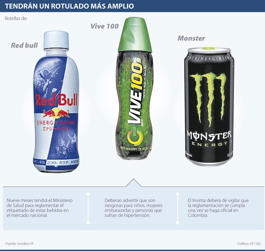 En nueve meses los empaque de las bebidas energizantes como Red Bull, Vive 100 y Monster, comercializadas en el país, deberán regular la información sobre los posibles riesgos que una mujer embarazada o lactante, un niño menor de 15 años, personas sensibles a la cafeína e hipertensos podrían sufrir al consumir los productos. Así lo dispuso ayer el Consejo de Estado.