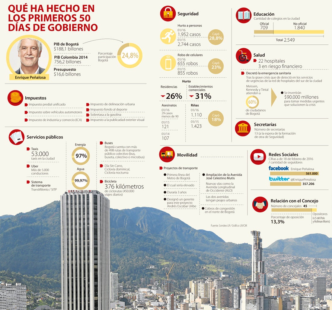 William Alfonso Piña, profesor asociado de la Facultad de Ciencia Política de la Universidad del Rosario, consideró que en los primeros 50 días de Peñalosa es muy poco lo que ha podido hacer, pues como todos los alcaldes el Concejo de Bogotá no les ha dado su propio presupuesto y están trabajando con lo dejado por la administración pasada.