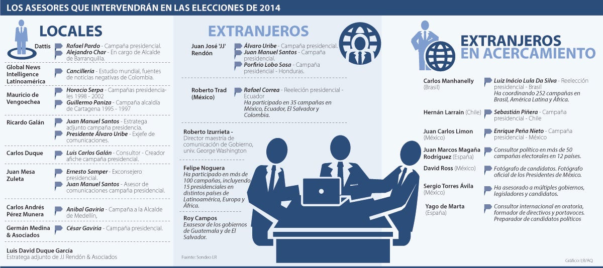 Entre 14 asesores se reparten las elecciones de 2014