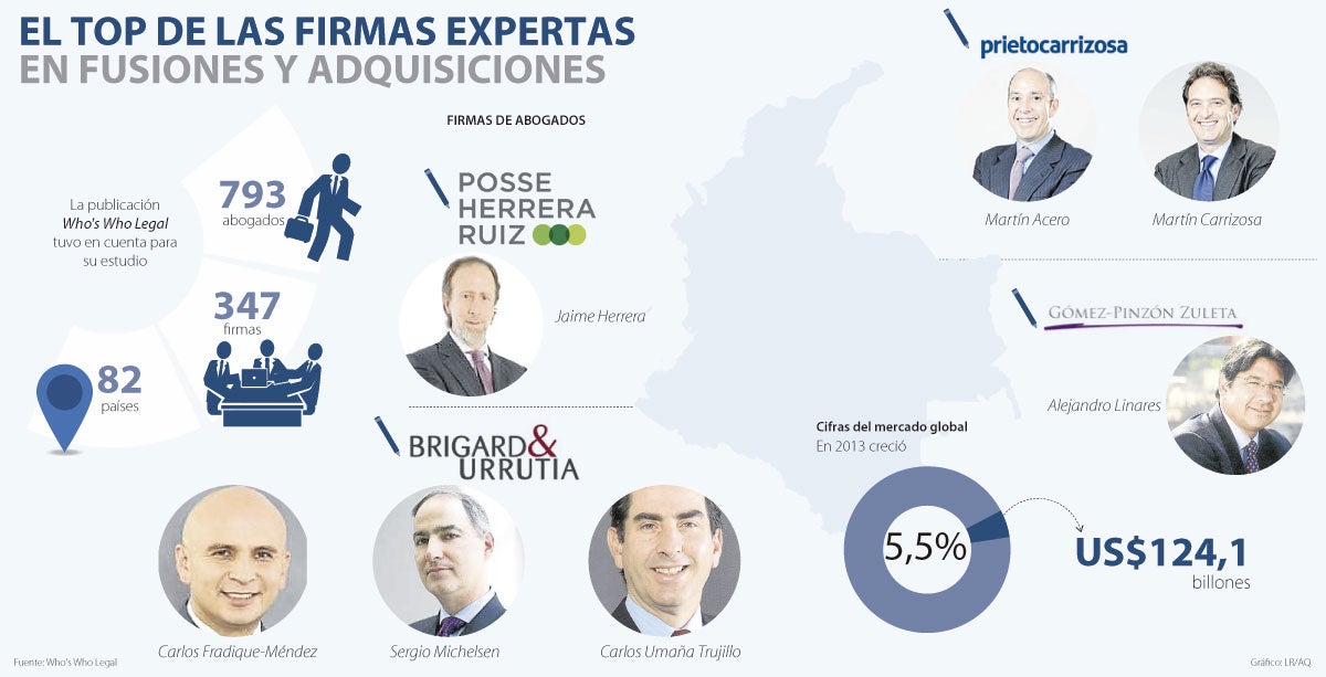 La publicación Who’s Who Legal 2014 destaca entre el grupo de los mejores abogados del mundo, en la práctica de fusiones y adquisiciones, siete profesionales de cuatro de las firmas más representativas de la materia en el país.
