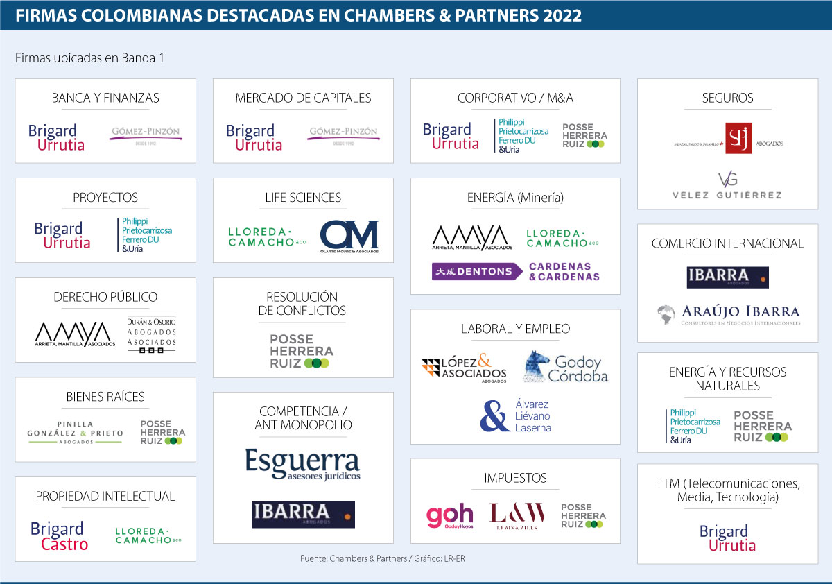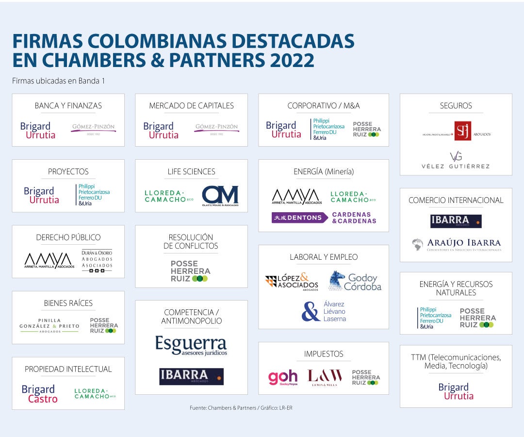 Por áreas, y en la Banda 1 del ranking, el bufete que más menciones obtuvo fue Brigard Urrutia, el cual destacó en varios rubros del mercado como Banca y Finanzas, Mercado de Capitales, Corporativo/ M&A y Proyectos. También despuntaron por su trabajo en TTM y Propiedad Intelectual.