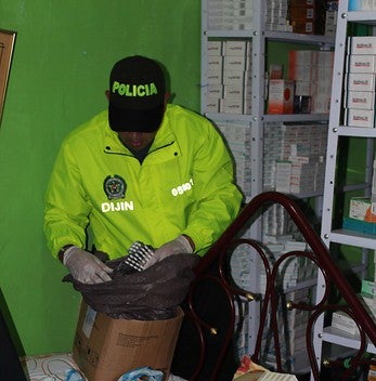 “La fabricación de elementos que simulan ser medicamentos, donde utilizan ácido bórico, material de construcción, yeso, arena y colorantes artificiales, que mezclados hacían que estos elementos parecieran medicamentos”, dijo Palomino.