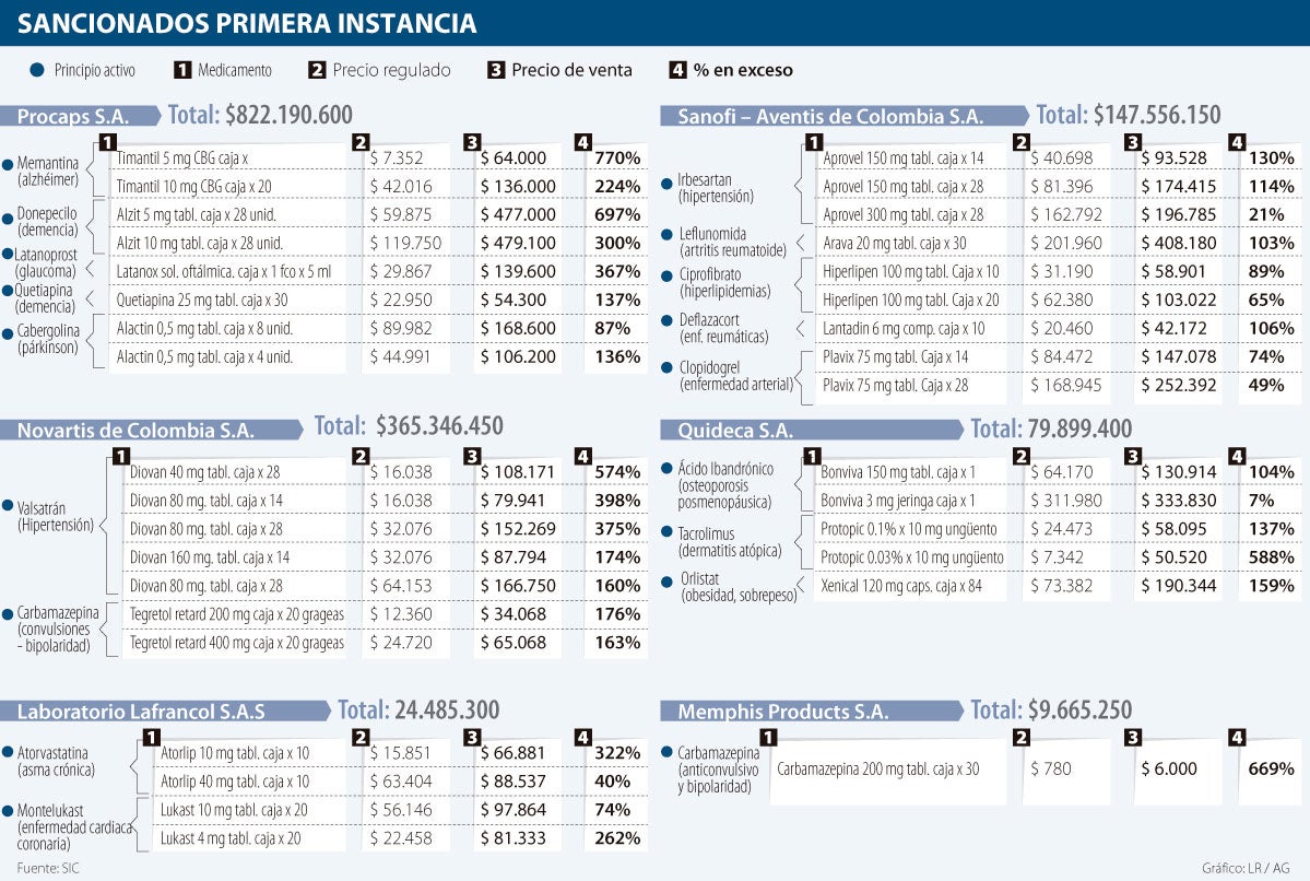 De quedar en firme la multa, la compañía que deberá pagar más es Procaps, con $822,1 millones; seguido por Novartis, con $365,3 millones, y Sanofi, $147,5 millones.