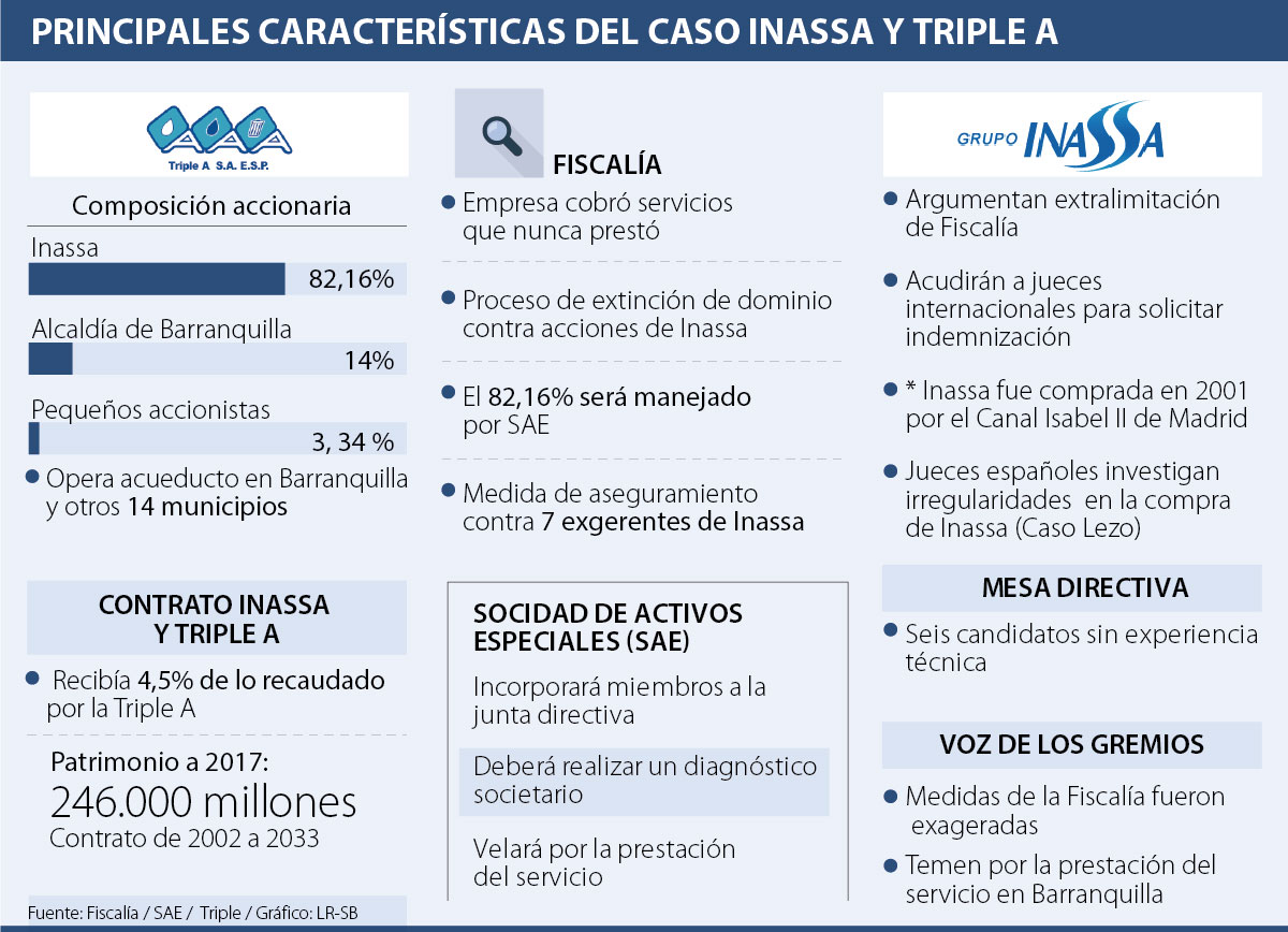 La empresa de servicios públicos del Atlántico, Triple A, enfrenta una de las mayores crisis administrativas de su historia, debido al proceso de extinción de dominio llevado a cabo por la Fiscalía General a la empresa española Inassa, que es la principal accionista de Triple A.