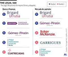The Legal 500 reconoce a 20 áreas de práctica diferentes entre las que están banca y finanzas. En esta categoría, la firma del año fue Gómez Pinzón Abogados, mientras que el abogado que se quedó con la distinción fue Carlos Fradique-Méndez, de Brigard Urrutia. La abogada revelación fue Mónica Cubillos Iregui, de Baker McKenzie. En la área de práctica de mercado de capitales, la firma del año fue Brigard Urrutia.El abogado que se quedó con la distinción fue Luis Gabriel Morcillo, de la misma firma, mientras que la revelación fue Lissa Parra Alarcón, de Garrigues.