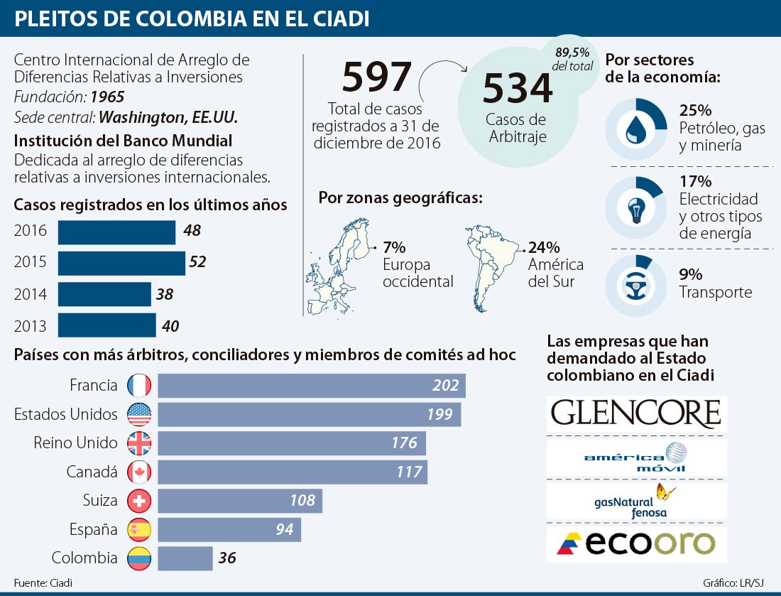 Además de la empresa ibérica, Colombia se enfrenta a demandas de América Móvil, por cambios en las reglas del TLC con México; Eco Oro debido a cambios legales en la exploración minera en páramos; y con Glencore, por un reajuste en el cálculo de regalías de la empresa Prodeco.