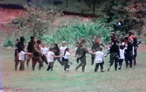 Navarro mostró unas imágenes del jefe guerrillero compartiendo con algunos integrantes de la Guardia Nacional Venezolana.