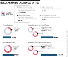 En ese sentido, la remuneración del trabajo nocturno y suplementario, reglamentada en el artículo 168 del CST, quedaría de la siguiente manera: las horas nocturnas tendrán un recargo de 35% sobre el valor de las diurnas; las extras de la jornada del día se remunerarán con un 25% adicional; y las horas extras nocturnas tendrán un recargo de 75% sobre el valor ordinario.
