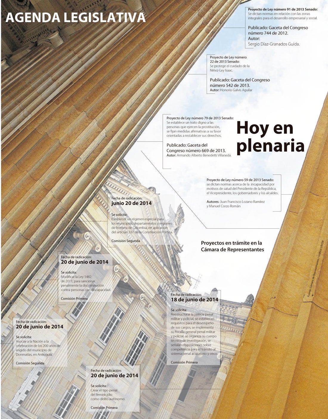 Aunque aún no se han definido el orden de las Comisiones en el Congreso, ya hay proyectos que están esperando ser atendidos por las organizaciones de la corporación y en trámite están algunos planes que pretenden reestructurar la justicia penal militar y policial, sancionar penalmente la discriminación a personas con discapacidad y otras más peculiares como asociar a la nación a la celebración de los 200 años del municipio Donmatías.